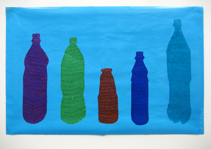 Sharpie marker on cyan wrapping paper
